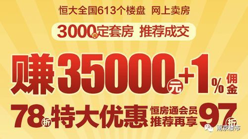 就在刚刚,恒大再次晋级网上卖房组合拳,3000元定套房!引荐成交赚35000元+1%佣钱,买不买房都挣钱!再次引爆全国楼市!