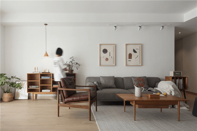 屋主要求家里简练有用温馨就好,客厅很多的留白,清淡的用色,完美的诠释了精约的真理,木材、棉麻等天然原料带来朴实的关于理性空间的审美,更多的出现返璞归真的质朴感。